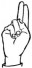 На ћирилици написано ЛАБУДА АНДРЕЈИЋ састоји се из 14 слова [?]. Исписано ћириличном једноручном азбуком за глувонеме:
